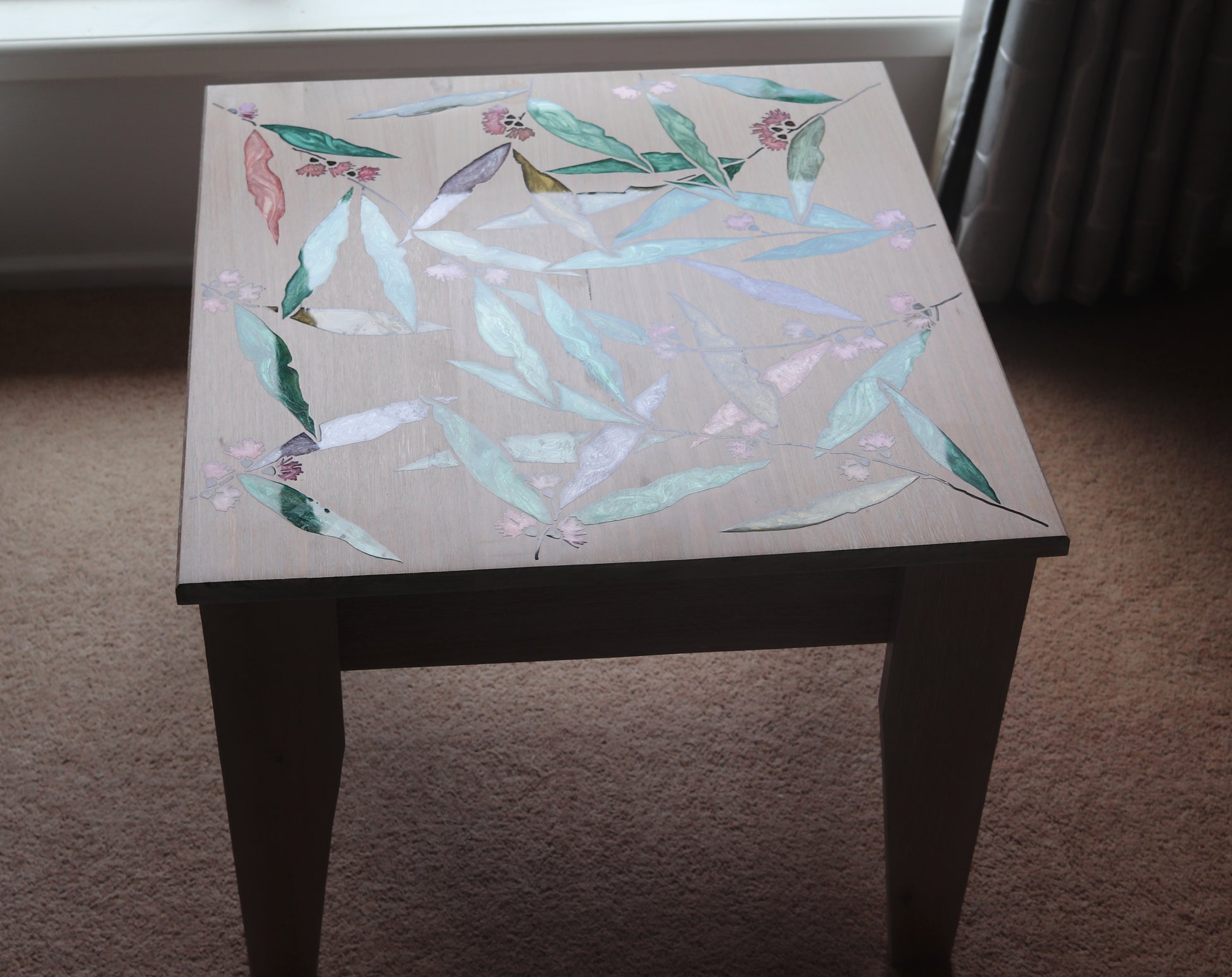 Crafted from native timber with a white finish, the table serves as a stunning canvas for the pretty gum leaves and pastel flowers. As light dances upon the surface, the leaves come to life, revealing intricate patterns within the resin. A beautiful effect that can uplift the decor of any room.