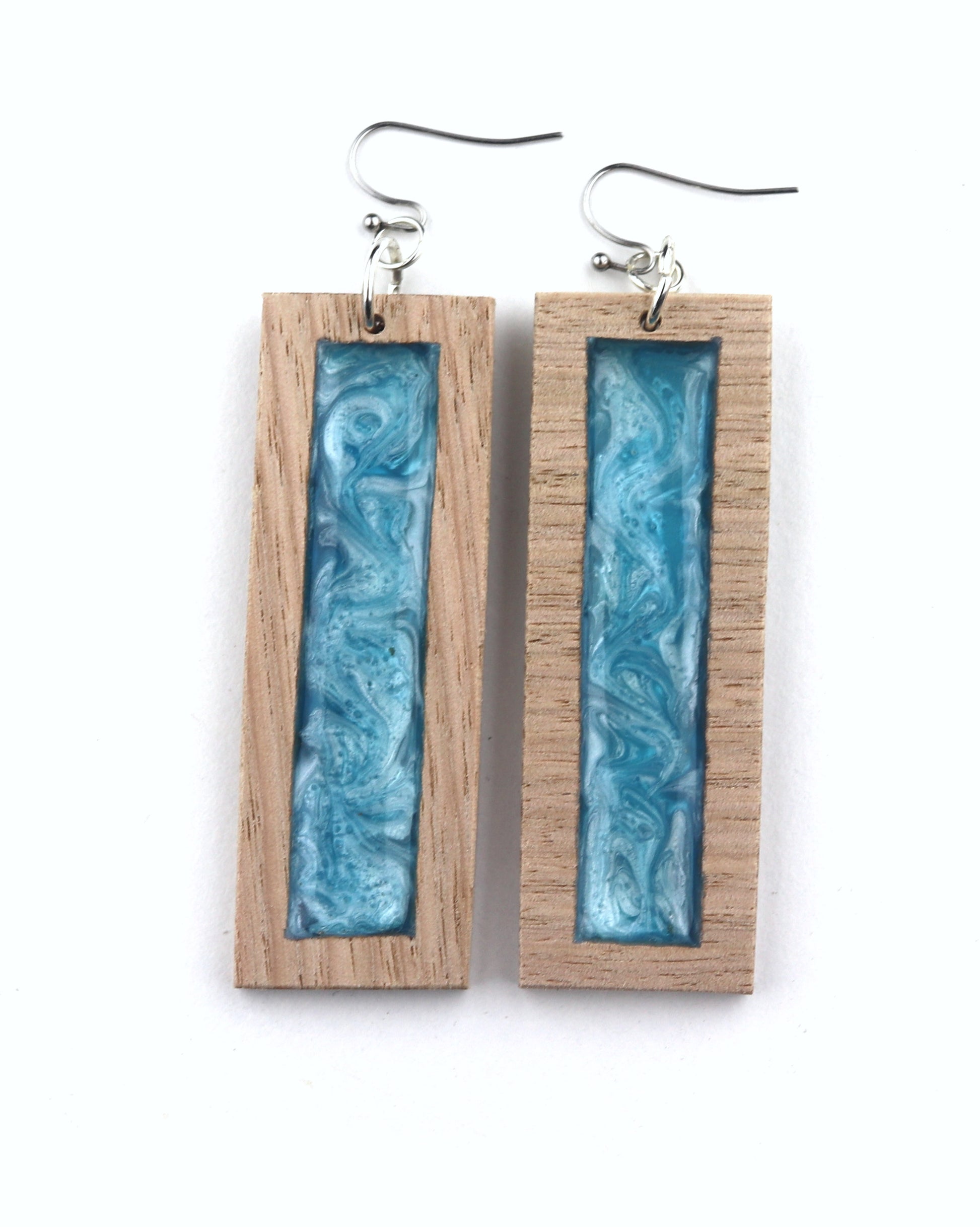 Aurora Earrings – Blue Edge – Wood & Resin Jewellery