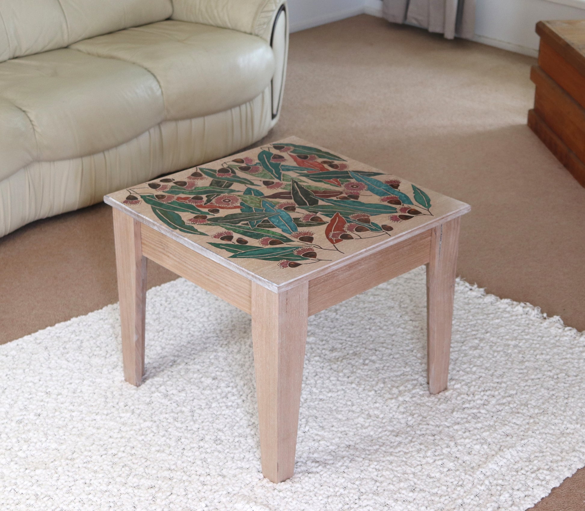 This accent table was handmade from Australian native timbers and resin on the Sunshine Coast, Australia.